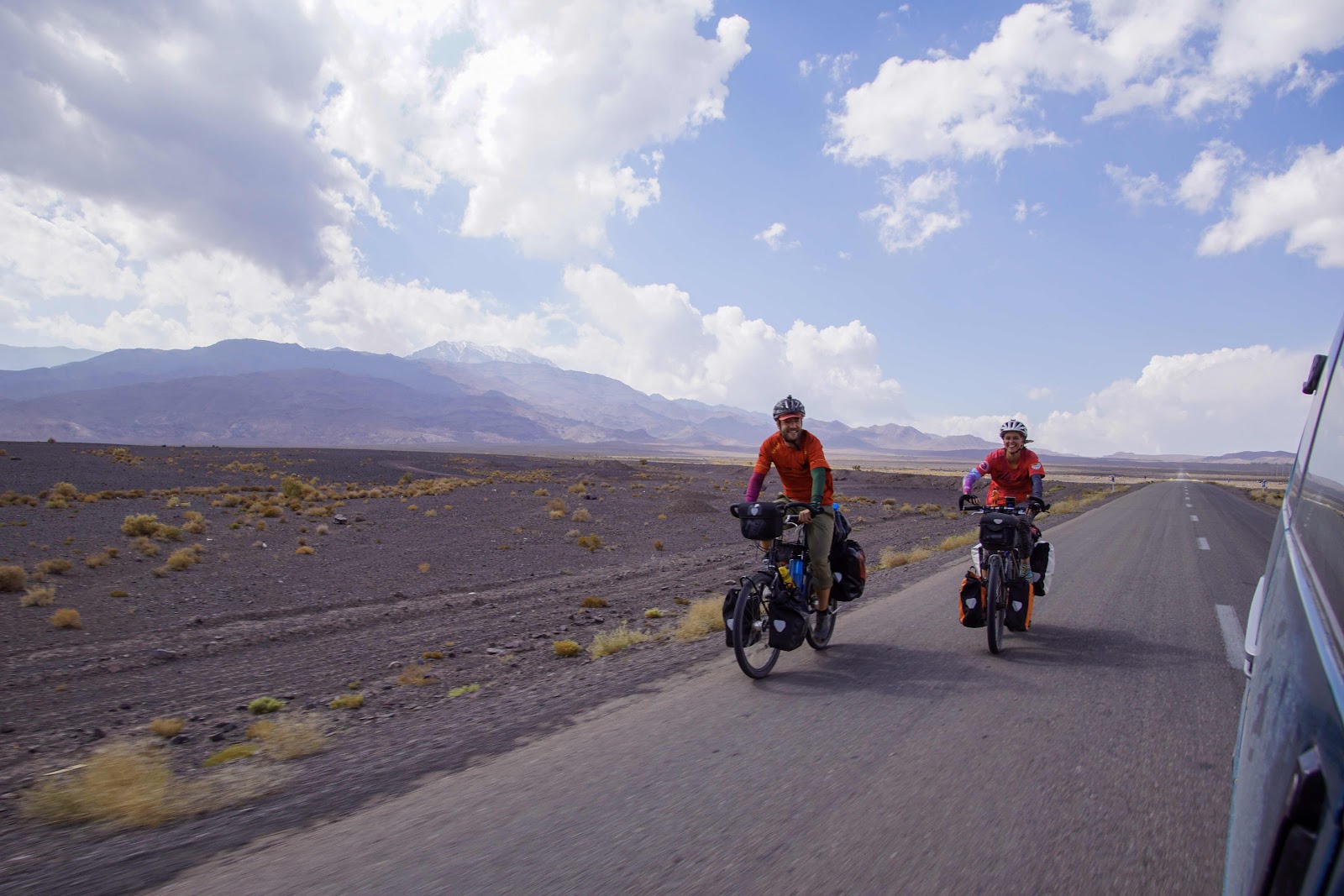 Der Iran ist ein unglaublich bergiges Land - weit mehr als die Hälfte des Irans liegen auf über 1500m - und so sehen wir während unserer Talfahrt bereits wie sich die Wüste wie ein orangenes Meer in der Ferne ausbreitet. Dazwischen ragen immer wieder die Kaluts, „Schlösser“ aus Stein auf; genau der richtige Ort also, um sich ein paar Tage zu verstecken und Einsamkeit zu genießen. Doch es kommt alles anders als geplant, denn wir treffen hier in der Wüste auf zwei Langzeit-Fahrradfahrer, Marie und Benno, aus Köln. Sie sind die ersten westlichen Reisenden, die wir seit unserer Ankunft im Iran treffen und es tut richtig gut, sich während des tosenden Sandsturmes in der Nacht in unserem Auto über Kopftuchzwang, Verschleierungspflicht, Reiserouten und - pläne und allerlei Erlebtes auszutauschen. Endlich finden wir mit den beiden auch kalorienhungrige Abnehmer für die Süßigkeiten, die uns Mohammeds Eltern mit auf den Weg gegeben haben. Die beiden reisen leider nicht wirklich in unsere Richtung, denn sie sind auf dem Weg nach Pakistan und wir auf dem Weg nach Armenien, doch für einen Tag nehmen wir sie samt ihrer Räder und ihrer gefühlt tausend Packtaschen in unserem Auto mit - ein kurzes aber sehr erlebnisreiches und amüsantes Vergnügen. Und wer weiß... vielleicht kreuzen sich unsere Wege ja im Januar nochmal ;-) Schön wär‘s!