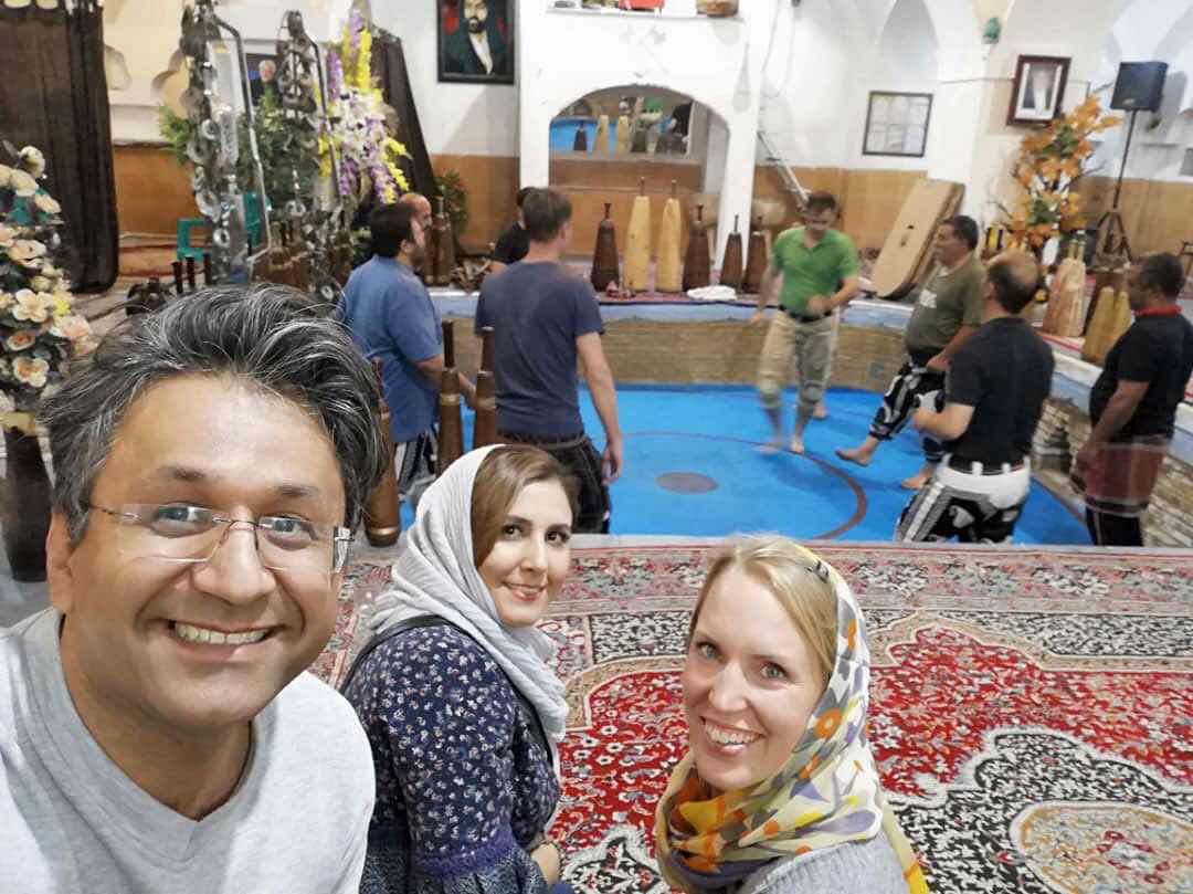 In Kerman gibt es zudem - was sonst - ganz viele Tassen Tee, Schafskopf, vegetarische Pizza (die es im Iran laut Esi eigentlich gar nicht gibt ;-)), Safraneis, Rosenwassersorbet, Spaziergänge durch persische Gärten und eine Sporteinheit für Timo, der am Zoorkaneh-Training (traditionelle persische Kampf-/ Dehnsportart) teilnehmen darf, UND selbstgemachten eisgekühlten Rotwein. Aber Achtung, wer damit erwischt wird, dem drohen 70 Peitschenhiebe - und das nicht nur, wenn der Rotwein eisgekühlt!!! gereicht wird...