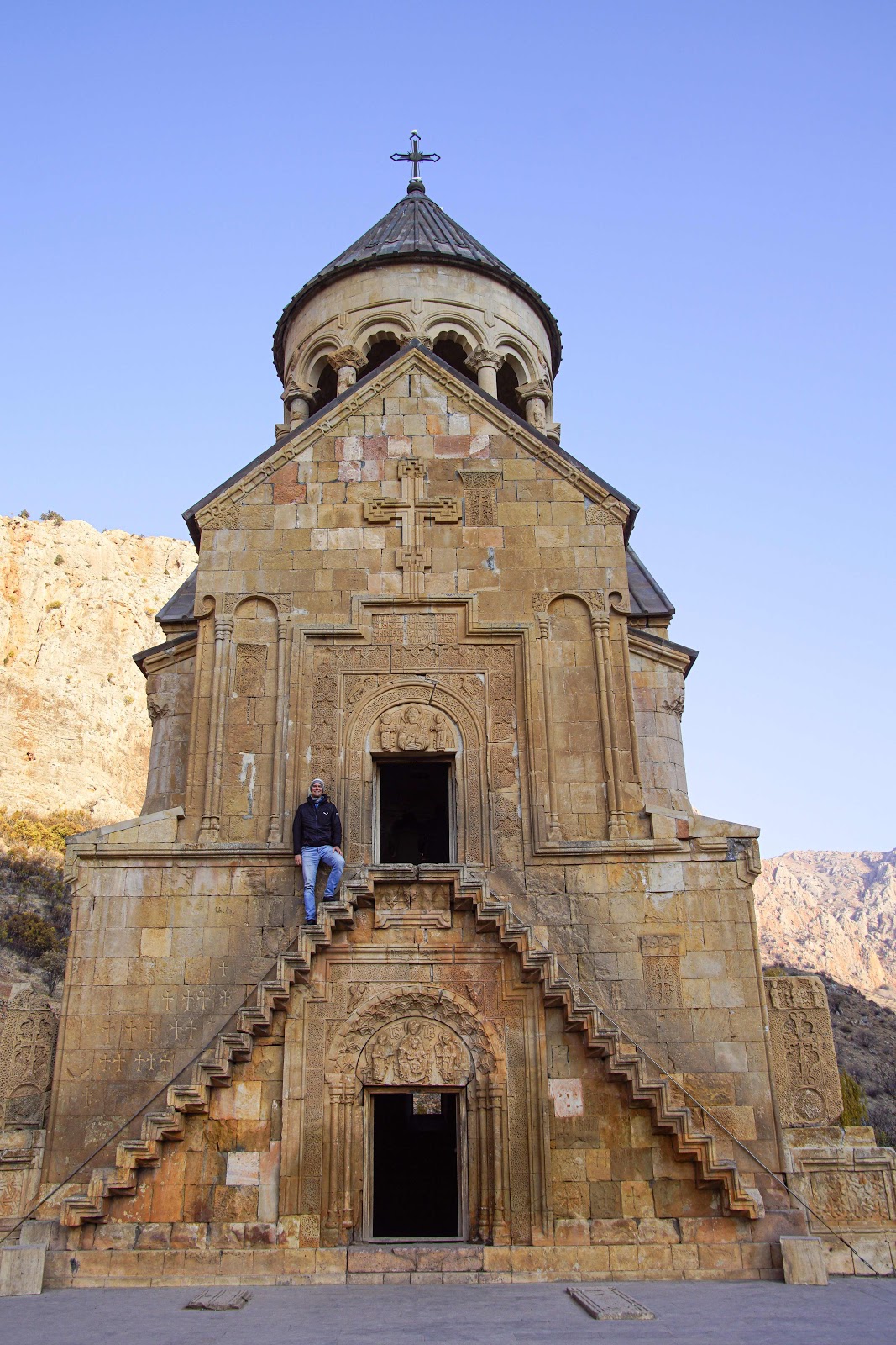 Der Kontrast zum Iran könnte auch in anderer Hinsicht kaum größer sein. An den Bankautomaten erhalten wir mit unserer Visakarte wieder Geld, die Frauen tragen keine Kopftücher mehr und die bunt verzierten Moscheen existieren nur noch in unserer Erinnerung. Im wahrsten Sinne des Wortes steinalte Kirchen und Klostergemäuer, deren einzige Wärme von den Kerzen der Gläubigen ausgeht, stehen meist einsam in der Bergwelt Armeniens. Wir spüren, dass wir nicht mehr in einem Wüstenstaat reisen, denn Brunnen mit trinkbarem Wasser befinden sich hinter jedem Pass und bei jeder Kirche - und beides gibt es in Armenien zu Genüge. Wasservorräte auffüllen, Geschirr- und Gesichtswäsche sind somit kein Problem mehr und Körperwäsche erledigt sich bei Temperaturen unter dem Gefrierpunkt ja eh. Das Verkehrsaufkommen unterbietet selbst das auf der Autobahn nach Wilhelmshaven und teilweise sind die Straßen so ausgestorben, dass wir unsere Pilgerfahrt durch Armenien richtig genießen können.